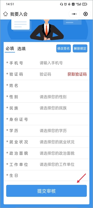 5、提交之后,即可填写下方其他信息。待内容填写完毕,点击“提交审核”,等待后台审核通过,便可加入工会。