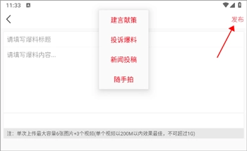 2. 进入界面,选择报料分类并填写相关内容,随后点击发布就行。