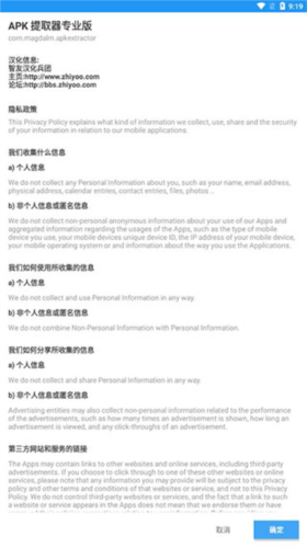 1、在本站的APK提取器进行安装,安装完成后直接打开。打开后首先会看到信息声明,具体内容如下图所示: