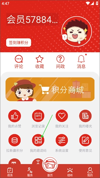 2、完成登录操作后,系统会自动跳转至“我的”界面,在此界面中,点击位于左侧偏下位置的“我的邀请码”。
