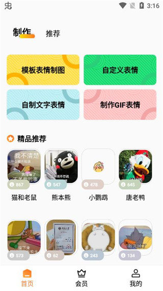 1、进入首页后,能看到详尽的表情包制作相关内容以及推荐。