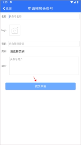 3、填写头条号相关信息,包括类别等,接着点击下方的“提交申请”按钮,待后台审核通过,申请即成功。