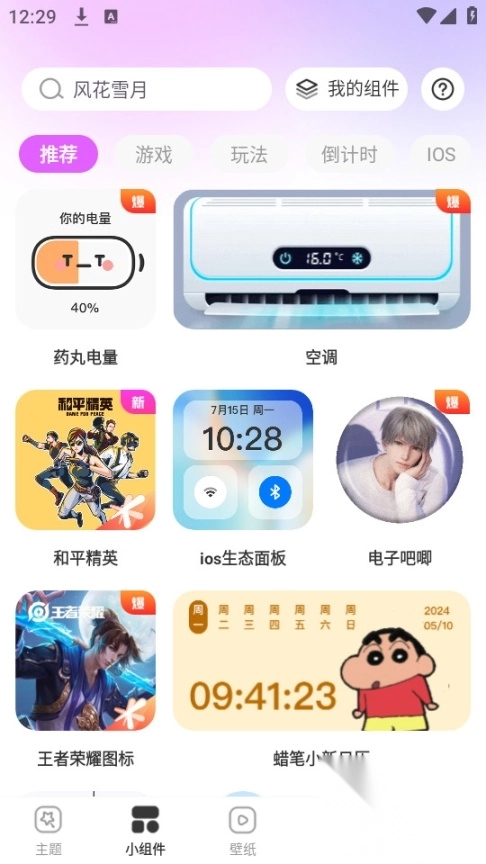 进入之后,下方的主题、小组件和壁纸都可以直接进行设置。