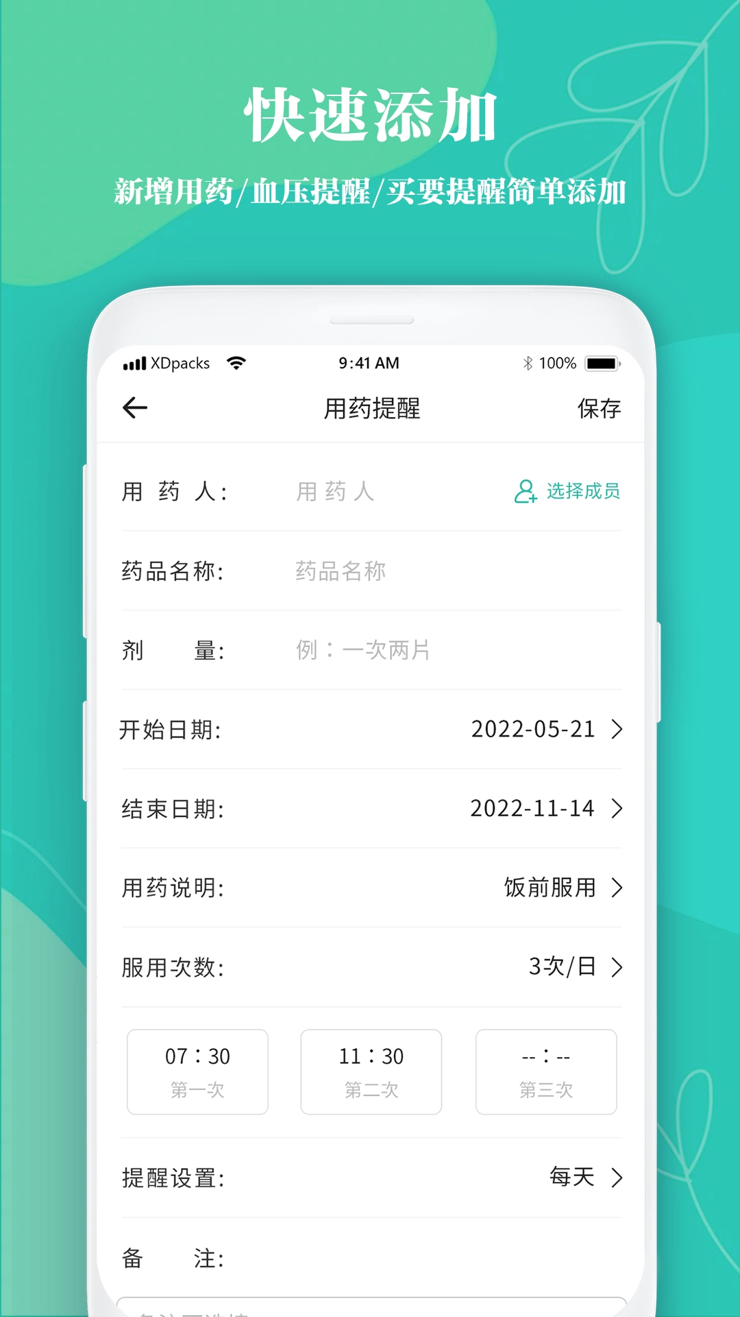 支持设置用药提醒功能,自动提醒您及时服药