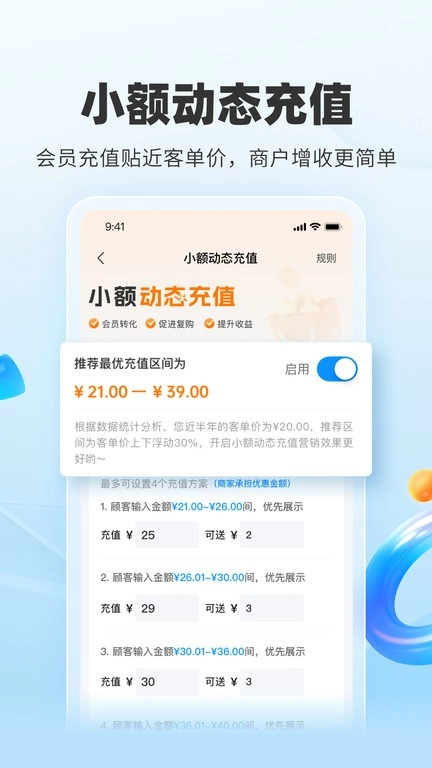 通过“消费即入会”“预存享会员权益”等多样化的卡券营销方案,助力商家拓展客源规模,提升单次消费金额。