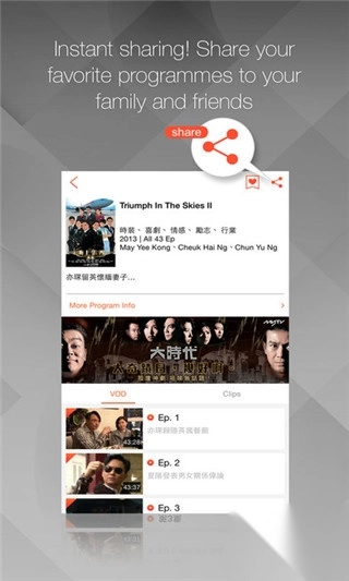 即时分享功能,让您能随时随地和好友分享您钟爱的节目与影片。