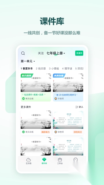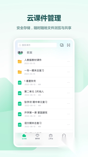 统一云账号登录,老师可拥有自己的教学资源空间;