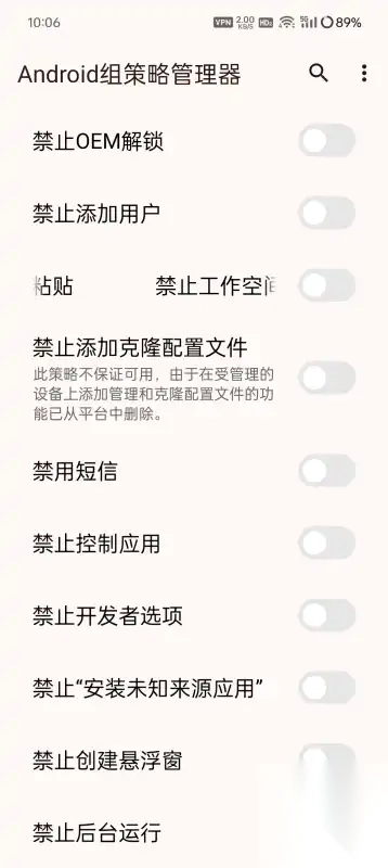 Android组策略管理器是一款功能强大的手机管理工具,专注于高效管理设备权限,为用户带来精细化的手机管理体验。利用其便捷的权限管理功能,用户能轻松增强手机安全性,保障个人信息与隐私得到妥善保护。尽管部分高级权限需要Root权限支持,但通过这款软件,用户仅需简单的一键操作,就能快速开启或关闭各项权限,实现对手机权限的全方位掌控。