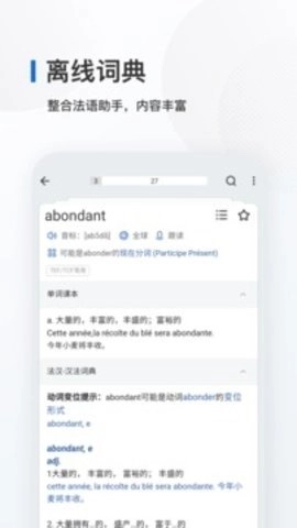 这款应用内整合了约一万个高频法语词汇,每个词汇都配有详尽的注解、标准读音以及对应的例句译文等实用内容。