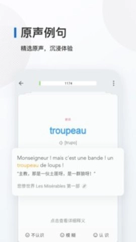 法语背单词配备有声读音功能,助力用户更精准地掌握正确发音。