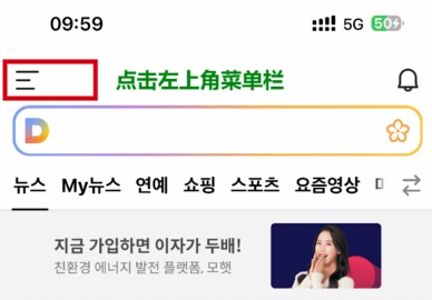 打开DaumCafe ,首页点击左上角菜单栏