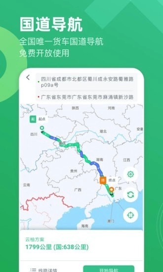 【国道导航】全国独家货车国道导航服务,现已免费开放使用,我们专注于为货车司机规划更省钱、更顺畅的路线!
