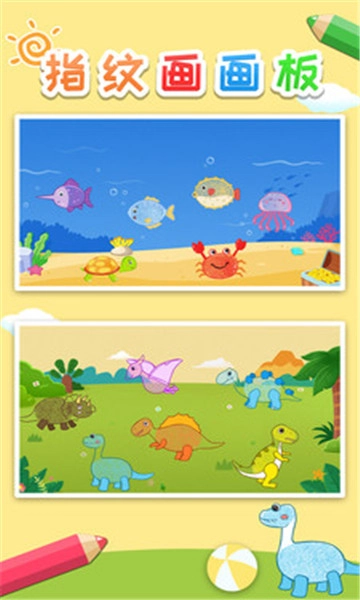 指纹画画板软件适用于幼儿园宝宝、儿童、少儿以及热爱绘画的女生,绘画教程,能引导宝宝从基础的构图调色认知,逐步掌握创意图画设计,轻松实现育儿目标,让家长不再操心!