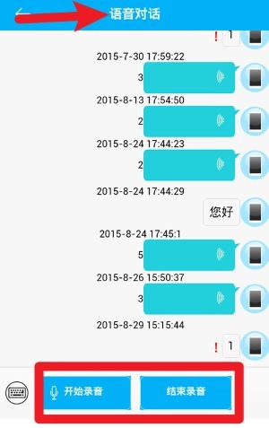 在语音对话页面里,用户可以通过点击按钮来启动和停止录音,这样家属就能便捷地和儿童或老人开展实时语音沟通了。