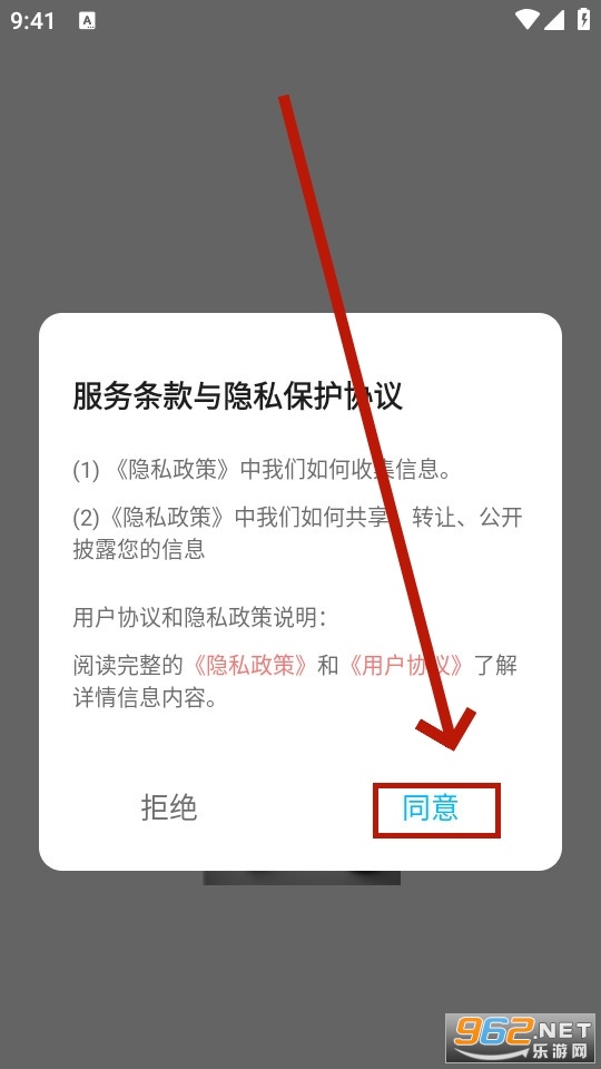 先安装酷元剪辑应用,安装完成后打开它。进入应用时,找到“同意”按钮并点击,以此表示同意相关的隐私政策。