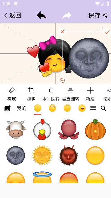 添加表情后,你可以对它进行各种编辑操作:比如添加自己喜欢的文字,或者重新绘制表情的细节;要是画错了,还能用橡皮擦擦掉错误的部分;此外,360度翻转、调整透明度、给表情抠图等功能也都能实现哦!
