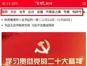 打开百观软件后,在首页能看到关注、发布、活动、直播、专题等不同分类板块。