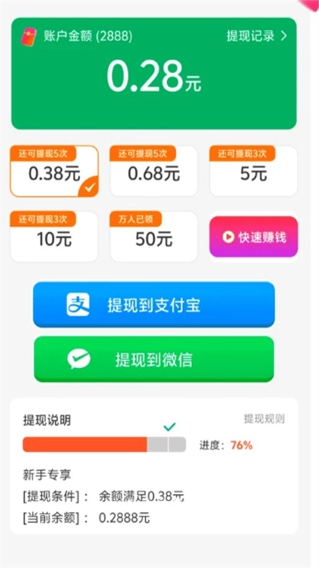 红包金额满足提现条件,可以随时提现
