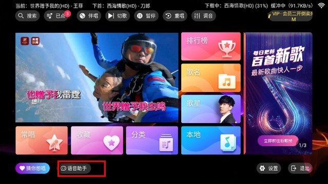 支持在电视端使用,可把家里的电视变成KTV终端来用