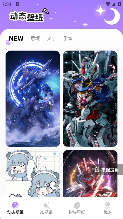 在动态壁纸页面里,除了各类全新的壁纸外,还设有意境、文字、手绘等多种不同分类。