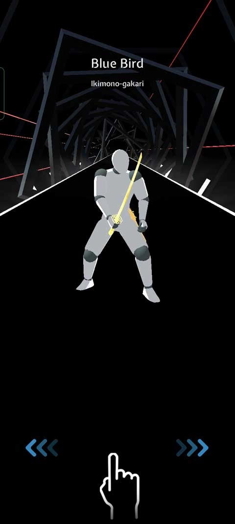 玩家需要依据方块的位置滑动操作,当方块滑动至指定位置时,角色便会自动发起劈砍动作,并且在劈砍过程里,颜色还会跟着音乐的节奏发生变化。