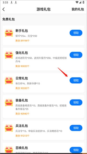 选择一个礼包,点击领取便可