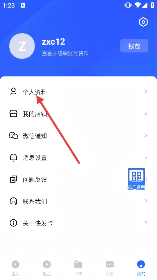 在个人中心页面点击【个人资料】选项,即可进入个人资料界面。