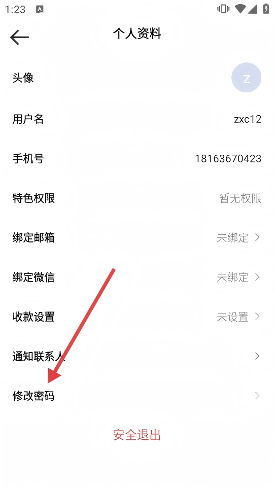 接下来在个人资料界面找到并点击【修改密码】选项,即可进入密码修改页面。