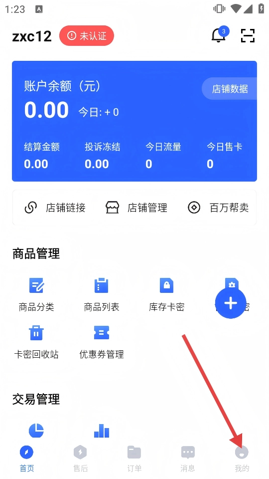 打开我们预先准备好的应用,进入首页后点击底部的【我的】选项,即可进入个人中心页面。