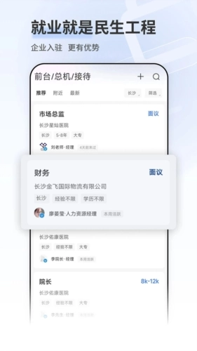 这里每天都会更新上万条企业招聘信息,不用担心找不到工作,就怕工作太多挑不过来,你可以随意挑选自己喜欢、想要的工作。此外,全新的长沙直聘还设有企业屏蔽功能,能完全保障你的个人隐私,同时具备严格的职位审核机制,对虚假信息零容忍,并且会实时更新名企专场招聘会,这就像通往名企的直通车,让好工作随时随地找到你。