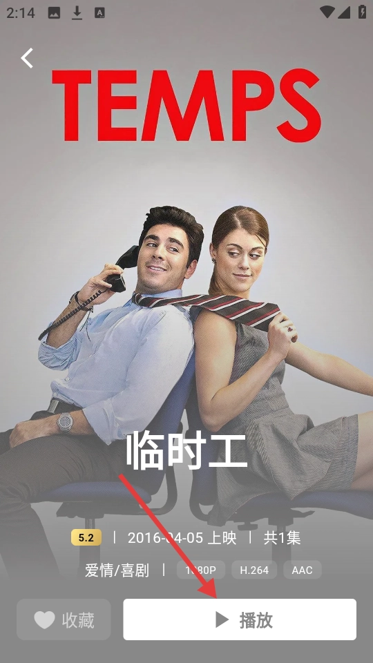 进入影视【临时工】详情页面,能查看评分、上映时间等信息,点击【播放】按钮,就能观看这部影视,畅享观影乐趣。