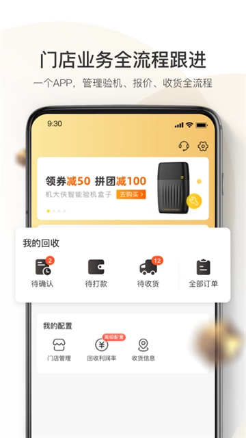 机大侠回收商版是当下市场中一款专为手机回收商家打造的管理工具,它允许商家绑定多家门店并管理客户信息,商家借助该软件能清晰掌握店铺的手机回收订单、库存情况以及财务数据,从而实现从采购到销售的全流程监管。此外,它还具备可自定义的回收参数与在线设备状态检测功能,助力商家依据市场动态调整经营策略,提升决策的精准度;同时,子账号体系与批量操作功能的设置,简化了团队协作流程,确保业务能够高效运转,有需求的朋友不妨前来体验一番!