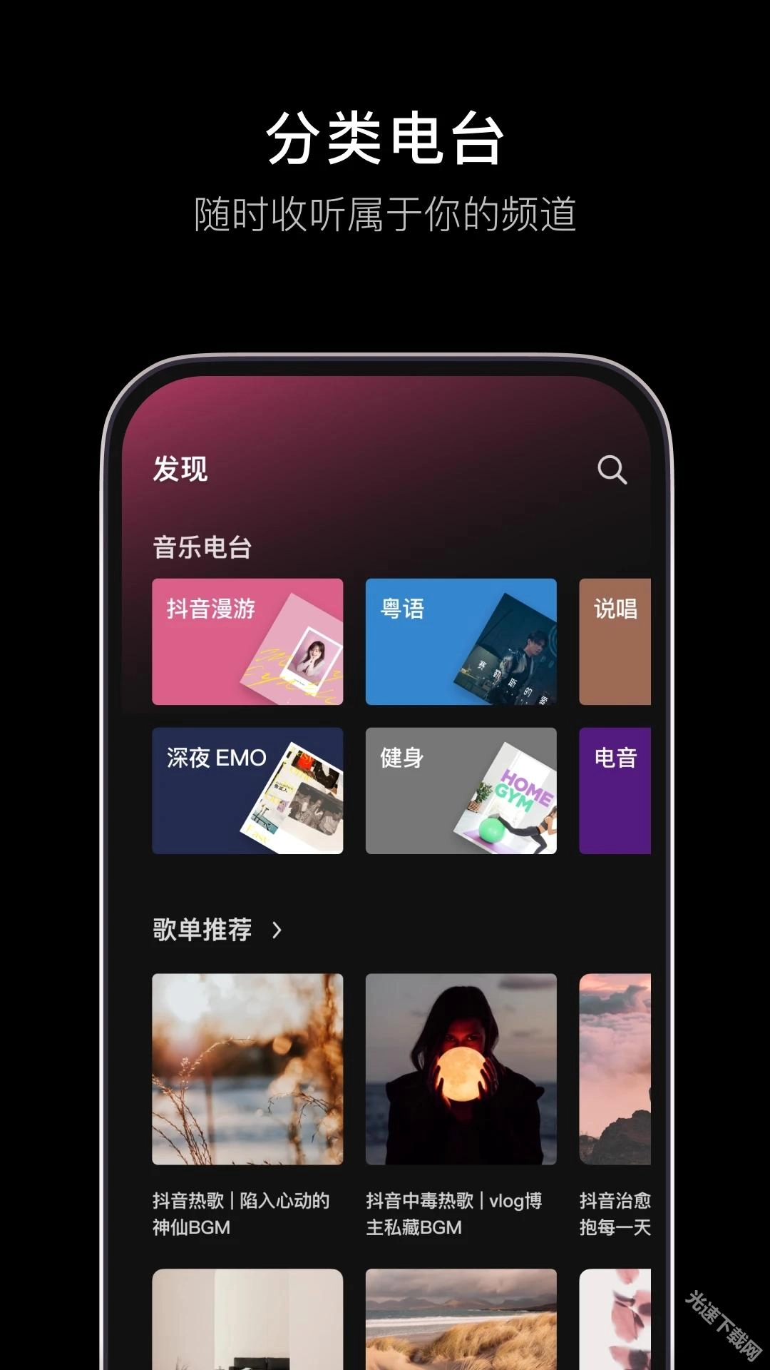 涵盖流行、嘻哈、电音、摇滚、中国风、民谣、独立音乐、纯音乐、R&B、爵士、乡村、蓝调、雷鬼、拉丁等多样音乐类型,优质曲目尽可聆听。