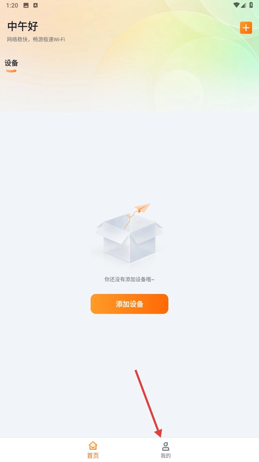 我们启动软件后,首页会呈现设备管理相关的内容,要是想注销账号,就点击底部的【我的】按钮进入个人页面吧。