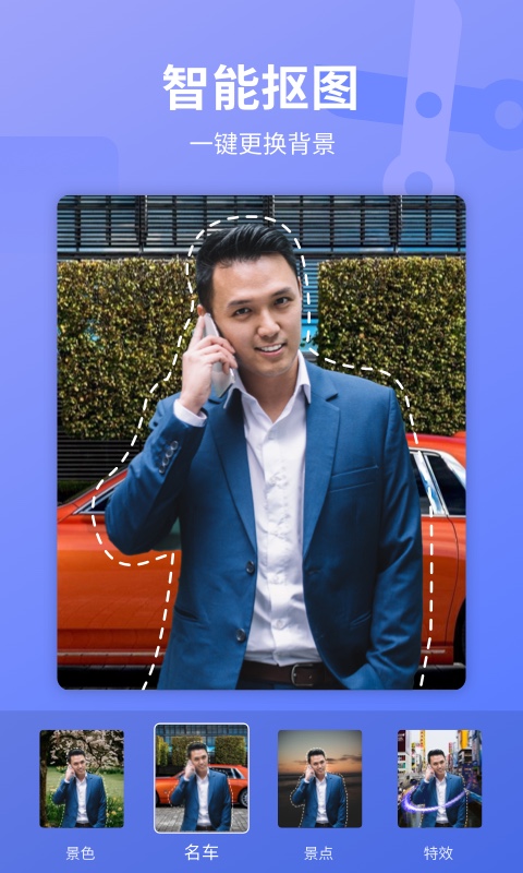 2、回到过去,岁月穿梭到未来,一键换背景,海量酷炫壁纸,给拍照带来新的灵感。
