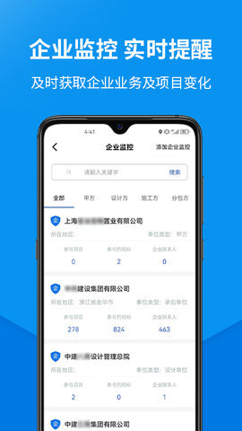 作为专注于建筑业工程项目信息服务的平台,盯工程凭借建筑行业的大数据积累与分析能力,已深耕该领域信息服务达14年。平台目前已链接全国16万家活跃的施工总包企业,可为用户提供全方位服务。作为鲲鹏控股集团旗下筑龙股份的内部孵化项目,盯工程整合了集团的优势资源,从而进一步提升了自身的服务实力。