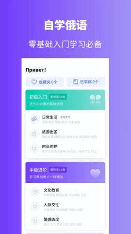 这款俄语学习应用提供了丰富的场景对话内容,能帮助用户轻松学习俄语字母、掌握发音,无论是常用俄语对话还是日常交流技巧,都能满足用户的学习需求,是学习俄语不可或缺的实用工具。