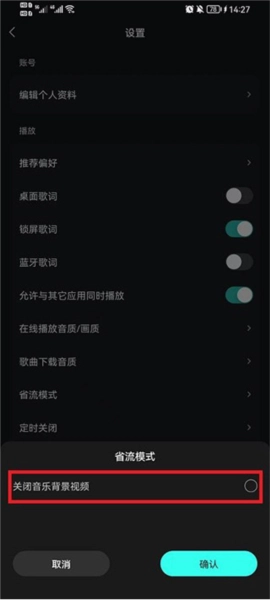 进入后找到“关闭音乐背景视频”的开关并点击,再点击“确认”按钮就可以了。
