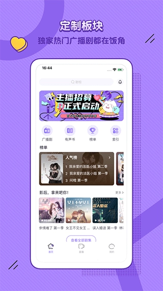 饭角是一款主打二次元音频内容的广播剧软件,能帮我们找到并收听心仪的音频节目。这里的音频类型十分丰富,包含广播剧、电台、有声书等多种形式,还汇聚了众多知名声优可供关注。作为手机应用,饭角同时也是一个互动交流社区,我们可以在这里发布原创作品,或是和其他人分享创作心得。另外,平台每周都会更新大量精品内容!