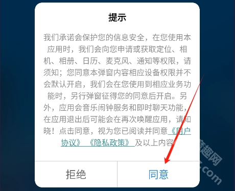 首先前往魔趣网下载并安装音极的新版本,接着点击“同意”按钮进入软件。