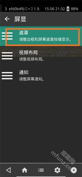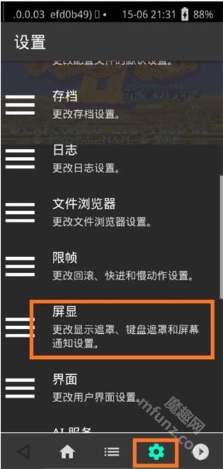 在安卓设备上打开RetroArch应用,启动一款游戏后调出菜单,点击齿轮形状的设置图标,找到“屏显”相关选项并点击进入。