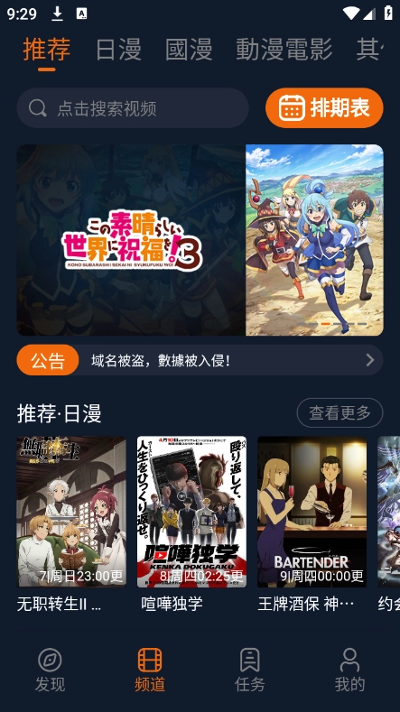 首页包含了日漫,国漫,热播动漫电影等等内容。