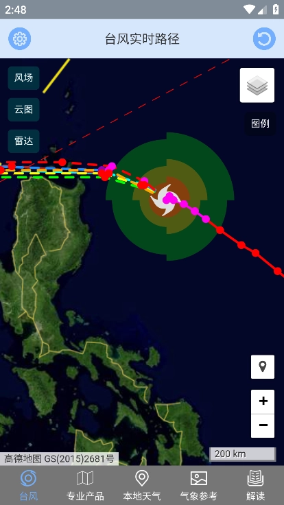 随即打开应用,用户就能立刻查看当前台风的详细信息以及移动路径图。