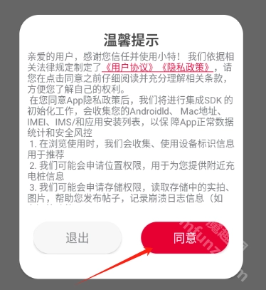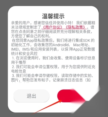 安装小特后,打开小特应用,点击同意相关条款,接着进行注册并登录小特账号。
