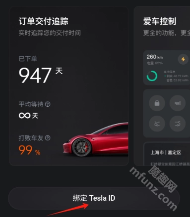 最后点击绑定Tesla ID,接着按照提示完成后续操作,就能成功绑定特斯拉车辆了。
