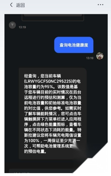 小特成功绑定特斯拉车辆后,就能详细查看电量等信息了。