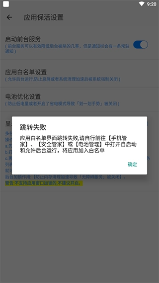 开启保活设置,让应用能够在后台持续运行,避免服务被频繁终止。