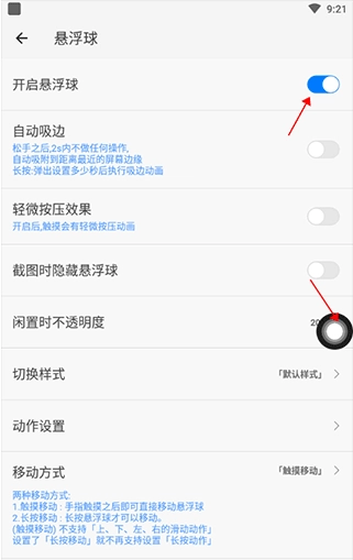 要是想在桌面上也能使用划一划的手势,你可以通过开启悬浮球来实现这个设置。