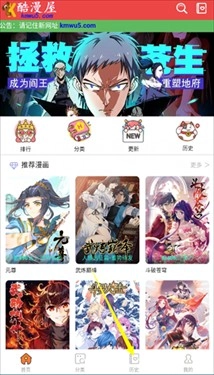 首先打开酷漫屋应用,进入软件界面后,点击底部的【历史】选项。