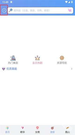 首先打开天天美剧,进入首页后点击左上角的【人像图标】。